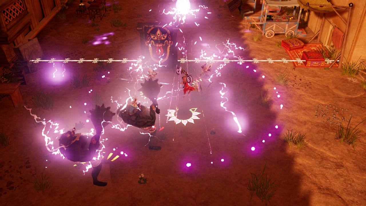 แต่เกมก็ใส่รายละเอียดมาเช่น การใช้การโจมตีร่วมกับการใช้อุปกรณ์ในฉากให้เป็นประโยชน์ เช่นการใช้การปีนเสาแล้วหมุนตัวเพื่อช่วยเสริมให้ท่าไม้ตายรุนแรงมากขึ้น และมันจำเป็นมากเพราะฉากท้าย ๆ มีความยากพอสมควร เรียกว่าหากไม่ได้เรียนรู้กันทุกท่าไม้ตายแล้วก็ยากที่จะผ่านไปได้ โดยเกมไม่มีระบบคืนค่าพลังที่ได้มาง่าย ๆ ผู้เล่นต้องใช้ท่าเผด็จศึกเมื่อศัตรูใกล้ตายถึงจะสามารถได้ไอเทมเติมพลังได้ ทำให้มีท้าทายความสามารถพอตัว แต่ก็ไม่ได้ยากเกินไปนัก แน่นอนว่าตัวละครหลักอย่าง Raji มีความเร็วและสามารถหลบหลีกการโจมตีศัตรูได้ ทำให้โดยรวมในส่วนแอ็คชั่นในเกมต่อใช้การหลบหลีกและสวนกลับที่ใช้ระบบแอ็กชันแบบ Hack and slash ที่สนุกพอตัว