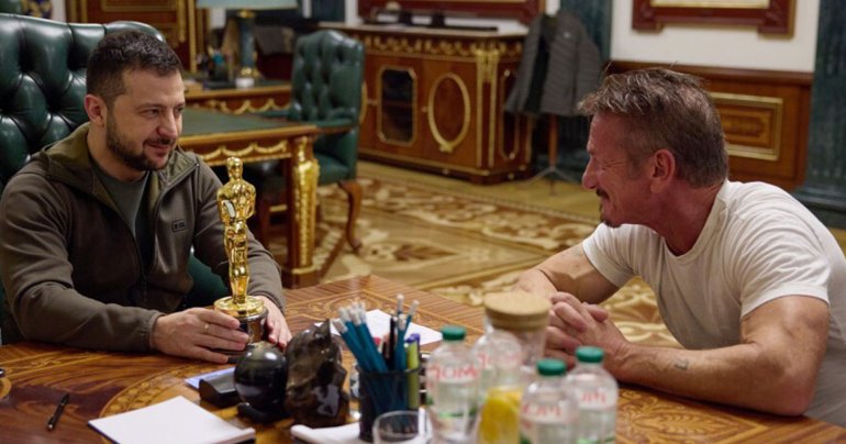 Sean Penn เยือนยูเครนครั้งที่ 3 พร้อมส่งมอบรางวัลออสการ์ถึงมือประธานาธิบดี
