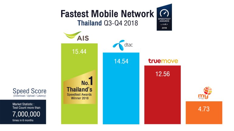 AIS ขึ้นอันดับ 1 เครือข่ายมือถือที่เร็วที่สุดในไทย 4 ปีซ้อนจาก Ookla