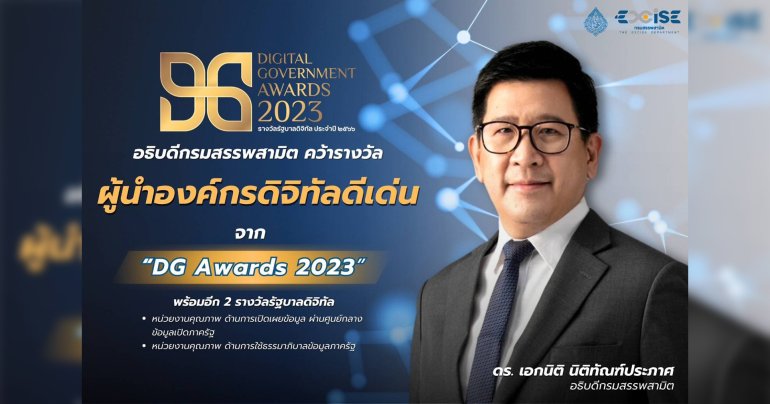 อธิบดีกรมสรรพสามิตรับรางวัล “ผู้นำองค์กรดิจิทัลดีเด่นแห่งปี” พร้อมอีก 2 รางวัล จากงาน DG Awards 2023 โดยสำนักงานพัฒนารัฐบาลดิจิทัล