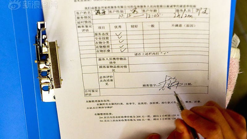 สาวจีนนามสกุล “เติ้ง” ผู้นี้จัดตู้เสื้อผ้าให้ลูกค้ามาแล้วราว ๆ 60 – 70 คน ส่วนใหญ่จะเป็นผู้หญิงชนชั้นกลางที่มีเสื้อผ้าเต็มตู้ไปหมด และในการจัดแต่ละครั้ง เธอจะนำสัญลักษณ์ติดไปที่เสื้อผ้าหรือของใช้ที่อยู่ในตู้ เพื่อความสะดวกของลูกค้าและจะมอบแผนผังรายการที่เธอจัดวางสิ่งของต่าง ๆ ในตู้ให้กับลูกค้าด้วย เพื่อความง่ายในการหาของครั้งต่อไปของลูกค้า ด้วยความละเอียดบวกกับความเรียบร้อยที่เธอมอบให้ลูกค้า ทำให้เธอมักจะได้รับเสียงตอบรับและคำชมที่ดีจากลูกค้าอยู่เสมอ แต่อย่าคิดว่าการจัดตู้เสื้อผ้าให้ผู้อื่นจะเป็นเรื่องง่ายและไม่เหนื่อยนะคะ บริการของเธอนั้นไม่ง่ายเลย เพราะเธอต้องยกเสื้อผ้าที่มีน้ำหนักมากลงจากตู้ และจัดการเก็บเข้าไปใหม่ให้เป็นระเบียบ จึงทำให้เธอมีอาการมือชาอยู่เป็นประจำ และเมื่อเรื่องราวธุรกิจสุดเก๋ของเธอเริ่มเผยแพร่ออกไปในโลกออนไลน์ ผู้คนต่างก็หันมาให้ความสนใจในธุรกิจของเธอกันมากขึ้นซึ่งในช่วงไม่กี่เดือนที่ผ่านมา เธอได้รับข้อความสอบถามข้อมูลจากลูกค้าผ่านมือถืออย่างมากมายเลยทีเดียว (แหม่!! น่าติดต่อมาจัดตู้ที่บ้านให้บ้าง ฮ่าอ่า)