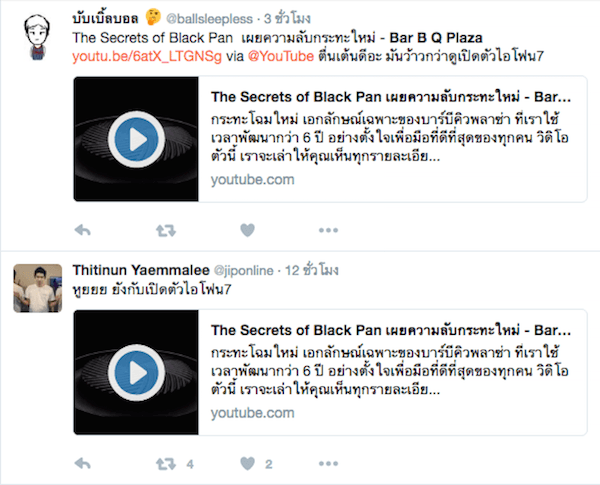 “Black Pan” กระทะโฉมใหม่ของ “Bar B Q Plaza” (บาร์บีคิวพลาซ่า) มาในรูปลักษณ์กระทะสีดำใหม่เอี่ยม ที่เคลมว่าเป็นการสร้างนวัตกรรมใหม่เพื่อประสบการณ์ที่ดีที่สุดในการรับประทานอาหาร แถมยังผลิตคลิปชื่อ “The Secrets of Black Pan – เผยความลับกระทะใหม่ – Bar B Q Plaza” ที่มาทำหน้าที่แนะนำและเผยแพร่คุณสมบัติสุดพิเศษของชุดเตาและกระทะ “Black Pan” ใหม่ให้เราได้รู้กัน ถ้าใครได้ดูคลิปแล้วล่ะก็ เป็นต้องรีบหาวันไปลองกันเลยทีเดียว