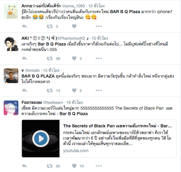 เป็นเรื่องฮือฮา เรียกกระแสตอบรับได้เป็นอย่างดี เป็นที่พูดถึงในสื่อโซเชียลอย่างหลากหลาย กับการทุ่มงบเปิดตัวชุดเตากระทะใหม่ “Black Pan” กระทะโฉมใหม่ ตาม iPhone 7 มาติด ๆ เป็นเอกลักษณ์เฉพาะของ “Bar B Q Plaza” (บาร์บีคิวพลาซ่า) ที่ใช้เวลาพัฒนากว่า 6 ปี อย่างตั้งใจเพื่อทุกคน เพิ่มอรรถรสการปิ้งย่างให้คุณมีมื้อที่ดีที่สุด เรียกน้ำย่อย กระตุกต่อมหิวกันไปเป็นแถว ๆ เลยล่ะค่ะ