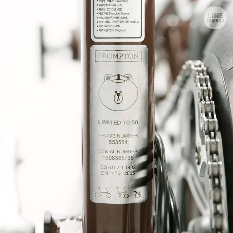 และวันนี้ BROMPTON ได้ทำงานร่วมกับ Line นับเป็นการทำงานรวมกันครั้งแรก โดย “BROMPTON X LINE FRIENDS” มีสีน้ำตาล, ซึ่งเป็นรุ่น limited edition และทำออกมาแค่เพียง 50 คันเท่านั้น (ซึ่งตอนนี้สินค้าหมดเกลี้ยงแล้วนะจ๊ะทั้ง 50 คัน)