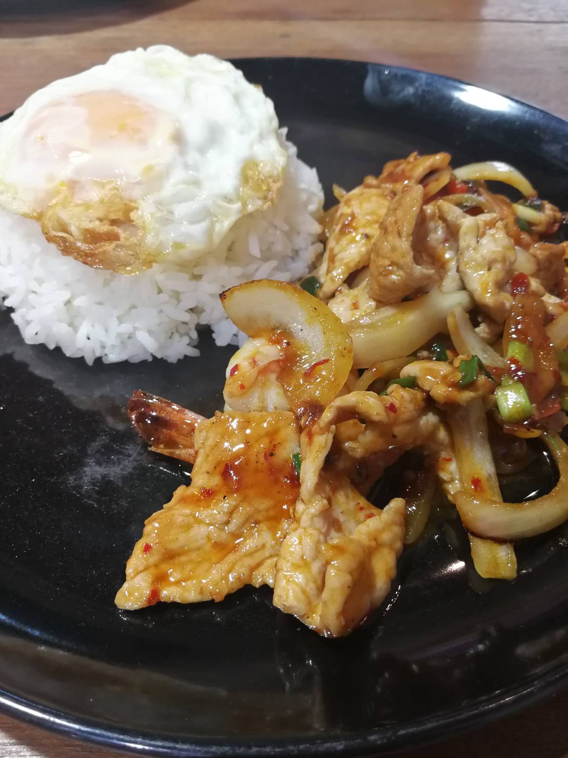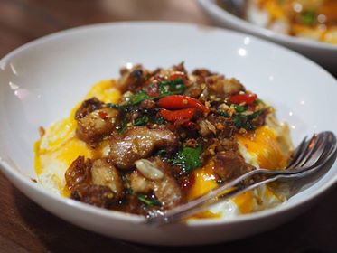 - หมูกระเทียมไข่ดาว 55 บาท