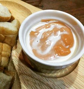 - พริกแกงใช้พริกแกงตำเอง ราดลงไปกินกับไข่ลาวาเข้ากันมาก ๆ