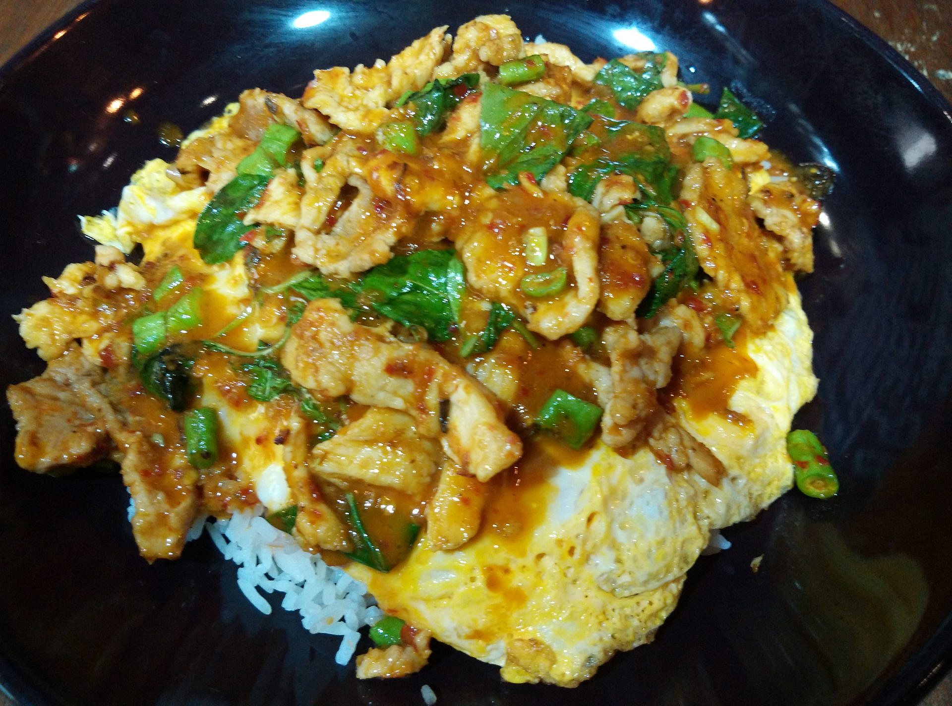 - กะเพรา ของที่ร้านจะทำรสชาติจัดจ้านเข้มข้น (แอดคอนเฟิร์ม ! เข้มข้นมาก)