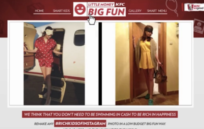 โดยทีมงานคิดกิมมิกของกิจกรรมโดยใช้แฮชแท็กว่า #LittleMoneyBigFun เพื่อมาล้อเลียนกับภาพถ่ายเซลลี่แบบอวดรวยของเด็กวัยรุ่นทั่วโลกใน ชื่อ #RichKidsOfInstragram