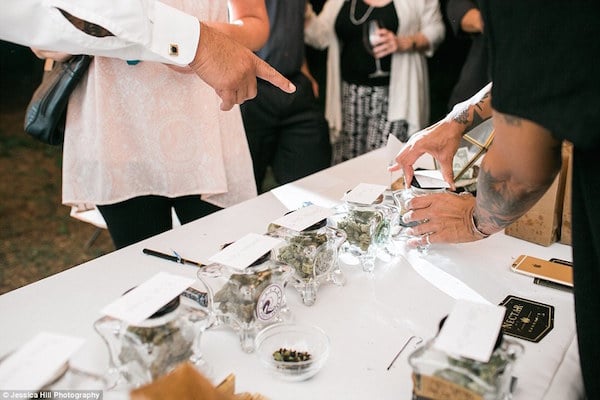 งานแต่งงานของ John Ellege และ Whitney Alexander เจ้าบ่าวเจ้าสาวจากสหรัฐฯ ได้จัดขึ้นเมื่อวันที่ 8 ส.ค.ที่ผ่านมา และทั้งคู่ได้ตัดสินใจกันว่าจะเสิร์ฟ “กัญชา” ให้แก่แขกในงาน (เอ๊ะๆ เดี๋ยวๆ) แทนการเสิร์ฟเหล้าหรือเบียร์ เหตุมาจากเจ้าบ่าวนั้นมีอาชีพเป็นผู้ปลูกกัญชา อยู่ในรัฐแคลิฟอเนียนั่นเอง แหม่!! ก็วินๆกันไป ทั้งบ่าวสาว ทั้งแขกในงาน