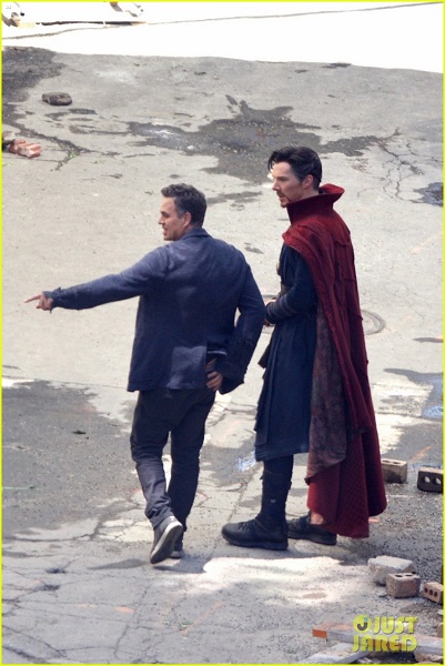 เว็บไซต์ Just Jared ได้เปิดเผยภาพในระหว่างการถ่ายทำ ซึ่งเป็นฉากต่อสู้ที่ประกอบไปด้วยตัวละครหลัก คือ ด็อกเตอร์ สเตรนจ์, หว่อง, บรูซ แบนเนอร์ (ฮัลค์) และไอรอนแมน ที่มาพร้อมกับชุดเกราะรุ่นใหม่ที่แตกต่างจากใน Captain America: Civil War และ Spider-Man: Homecoming อีกทั้งช่วงล่างของชุดที่จะได้รับการตกแต่งด้วย CGI ด้วย