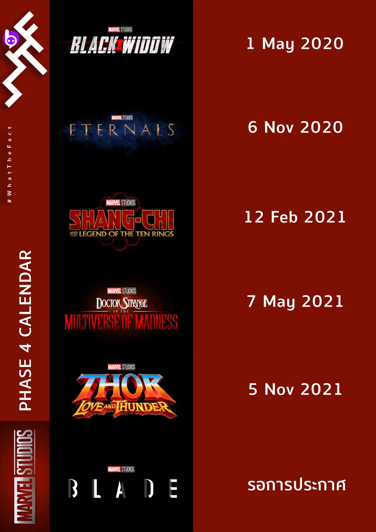 เป็นที่ตั้งหน้าตั้งตารอสำหรับแฟน ๆ ฮีโร่จากค่าย Marvel ล่าสุด Marvel Studio ได้ประกาศภาพยนตร์ทั้งหมดในเฟส 4 ที่จะฉายผ่านทั้งโรงภาพยนตร์และบริการสตรีมใหม่อย่าง Disney+ ออกมาอย่างเป็นทางการค่ะ