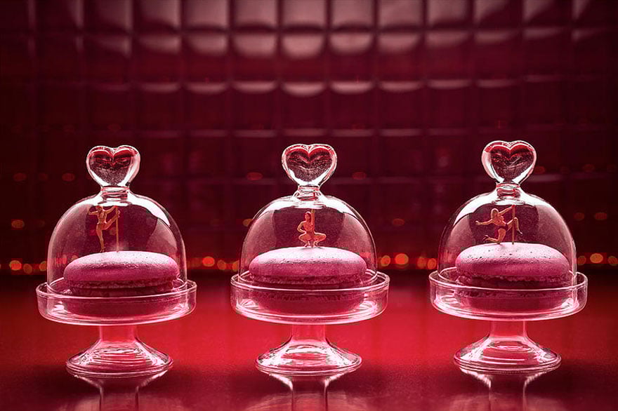 เขาจึงเริ่มหยิบเอาฉากจากภาพยนตร์ที่เขาชื่นชอบ เช่น Kill Bill, Star Wars และอีกหลายๆเรื่อง มาประกอบในขนมนั้นๆ