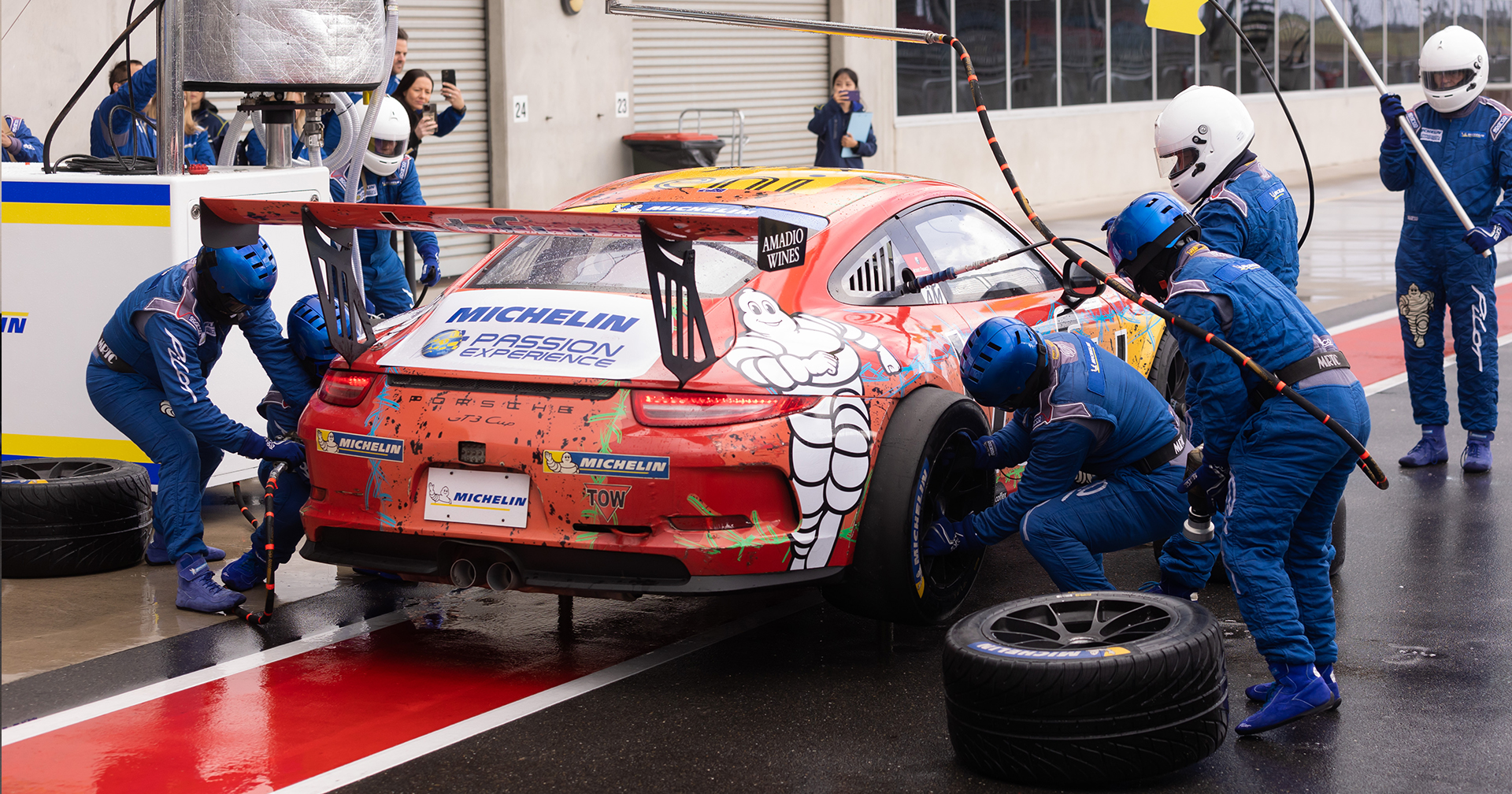 ในปีนี้ทาง Michelin เขาออกแบบกิจกรรมมาให้ร่วมสนุก ไล่ระดับความมันตั้งแต่ การเปลี่ยนยางที่เกิดขึ้นใน Pit Stop จริง ๆ ที่ความเร็วเป็นหัวใจสำคัญของหน้าที่นี้ ต่อด้วยการขับขี่รถสปอร์ต Porsche 718 Cayman มาพร้อมยาง Michelin Pilot Sport 4S ในสนาม The Bend Motorsport Park ที่ช่วยยึดเกาะพื้นได้ดี แม้จะฝนมากวนใจบ้างก็ตาม