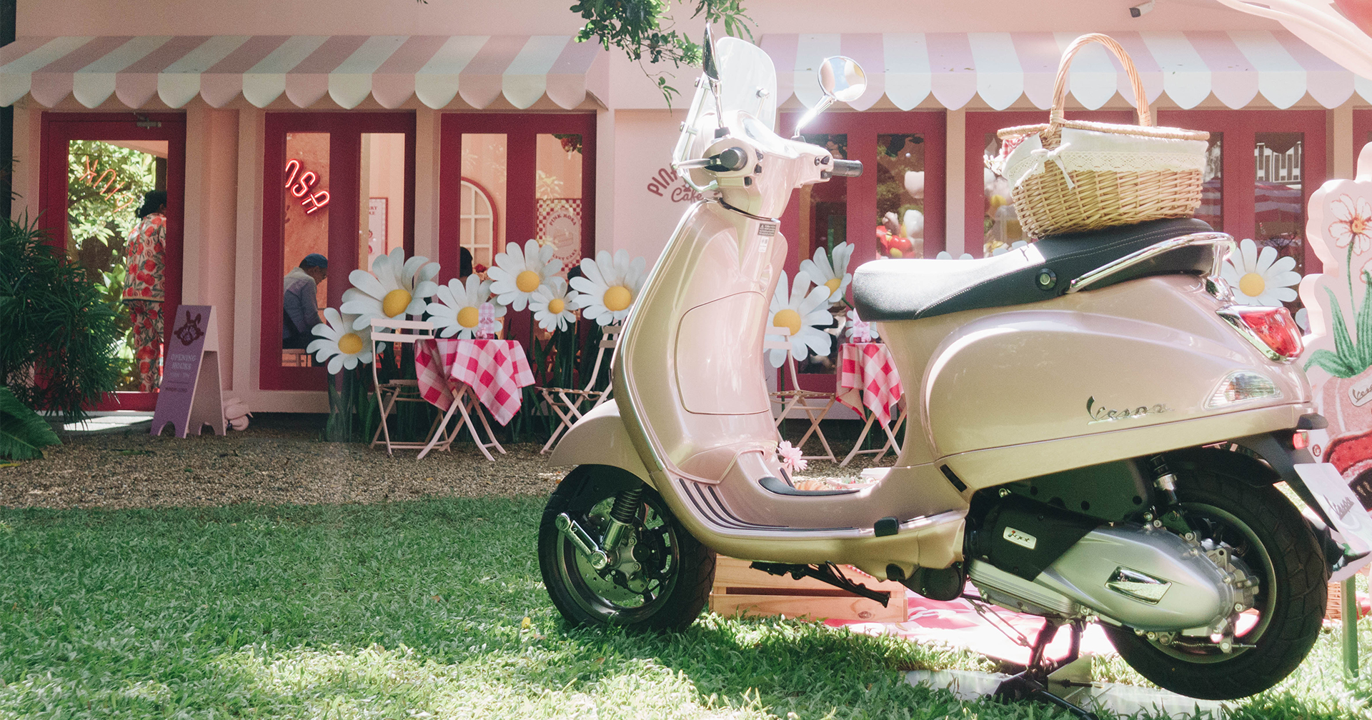 Vespa หยิบสีพิเศษ Pink Rosa มาร่วมฉลองในคอนเซ็ปต์ Live an Extraordinary Life with Pink Rosa ในรูปแบบ Pop-up Cafe ธีมสีชมพู โดยการออกแบบของศิลปินไทยของยูน – ปัณพัท เตชเมธากุล พร้อมเปิดให้บริการเมนูขนมและเครื่องดื่มพิเศษ ไปจนถึงการตกแต่งภายในร้านและโซนเอาต์ดอร์ ด้วยดีไซน์คาแรกเตอร์สุดโดดเด่นอย่าง ‘Rainbow Sue’ ที่ดึงคาแรกเตอร์มาจาก Bowkylion อีกด้วย