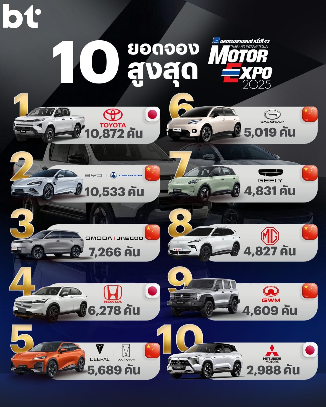 10 แบรนด์รถยอดสูงสุดใน Motor Expo 2025