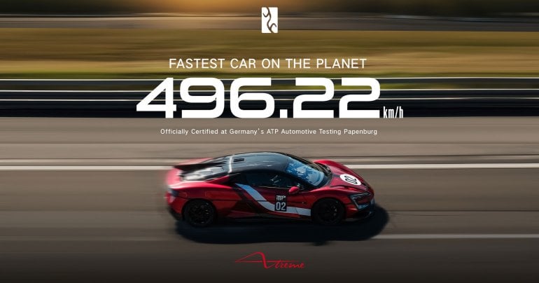 YANGWANG ได้สร้างประวัติศาสตร์หน้าใหม่ด้วย U9 Xtreme ไฮเปอร์คาร์รุ่นล่าสุดที่ทำลายสถิติรถยนต์ไฟฟ้าและแซงหน้ารถเครื่องยนต์เบนซินที่เร็วที่สุดในโลก ขึ้นแท่นเป็น ‘รถยนต์ที่เร็วที่สุดในโลก’ อย่างเป็นทางการ ทำไม YANGWANG U9 Xtreme ถึงเร็วที่สุดได้ ? YANGWANG U9 Xtreme (หรือ U9X) คือรุ่นพิเศษที่ต่อยอดมาจาก U9 ที่วางขายอยู่ในประเทศจีน โดยมีการอัปเกรดเทคโนโลยีครั้งใหญ่เพื่อรองรับสมรรถนะที่สูงขึ้น ซึ่ง U9 Xtreme พัฒนามาจากรุ่น U9 รุ่นเดิม แต่ได้รับการปรับปรุงขึ้นด้วยชิ้นส่วนคาร์บอนไฟเบอร์รอบคัน เช่น ลิ้นหน้าขนาดใหญ่ ช่องลมคู่บนฝากระโปรง และปีกหลังขนาดใหญ่แบบคอหงส์ ล้ออัลลอยขนาด 20 นิ้ว และ ยาง GitiSport e·Gtr2 Pro ที่ออกแบบมาโดยเฉพาะเพื่อรองรับความเร็วสูงสุด 500 กม./ชม. พร้อมระบบเบรกที่ทรงพลังด้วยคาลิปเปอร์ไทเทเนียมและจานเบรกแบบคาร์บอน-เซรามิก ภายในห้องโดยสารเน้นดีไซน์แบบรถแข่ง มีจอแสดงผลดิจิทัลเต็มรูปแบบ คอนโซลกลางแนวตั้ง และตกแต่งด้วยวัสดุคาร์บอนไฟเบอร์และ Alcantara ให้ความรู้สึกสปอร์ตสุดขีด YANGWANG U9 Xtreme…