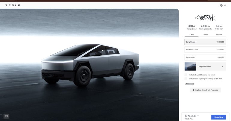 Tesla ได้เปิดตัวรถกระบะไฟฟ้า Cybertruck รุ่นใหม่ Long Range (RWD) ที่ขับเคลื่อนด้วยล้อหลังในสหรัฐฯ และเม็กซิโก ซึ่งติดป้ายราคาไว้ที่ 69,990 เหรียญ (2,345,000 บาท) จึงจัดว่าเป็นรุ่นที่ราคาถูกที่สุดจาก Cybertruck ทั้งหมด 3 รุ่น รวมถึงจุดเด่นที่แปลตรง ๆ ตามชื่อรุ่นก็คือ มีระยะวิ่งที่ไกลขึ้น แต่ประสิทธิภาพและฟีเจอร์ได้ถูกปรับลดลง