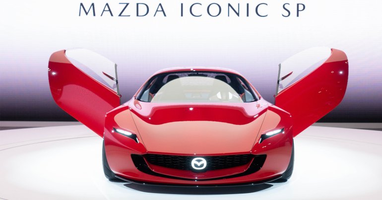 Mazda Iconic SP โรดสเตอร์คอนเซ็ปต์คาร์ ประตูปีกนก เครื่องยนต์โรตารีปั่นไฟเข้าแบตเตอรี่