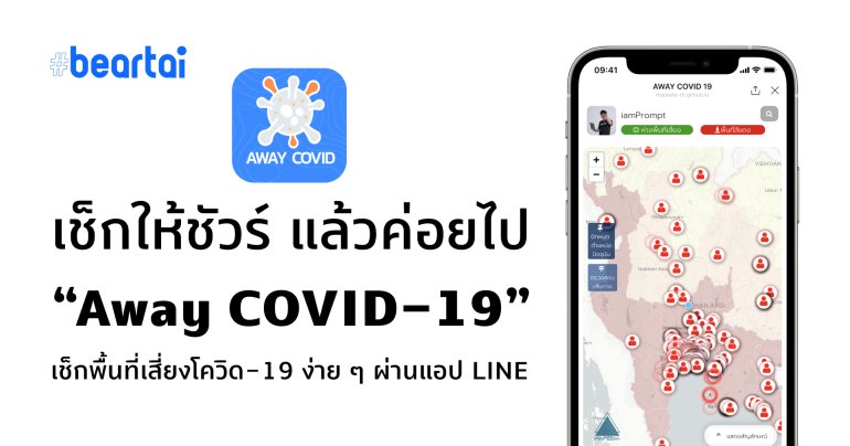 วันนี้เรามาแนะนำแชตบอต Away COVID-19 บนแอป LINE ที่จะมาช่วยเช็กพื้นที่เสี่ยงโควิดระลอกใหม่ ให้เราทราบได้บนแผนที่แบบ Interactive
