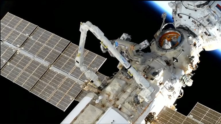 17 สิงหาคม โอเลก อาร์เทเมียฟ (Oleg Artemyev) และ เดนิส มาเตเยฟ (Denis Mateev) สองนักบินอวกาศของรัสเซียได้เดินออกไปปฏิบัติงานนอกสถานีอวกาศนานาชาติ (ISS) ตามปกติ ซึ่งรอบนี้ได้ไปทำงานบนแขนหุ่นยนต์ในส่วนโมดูลของยุโรป (ESA) แต่อยู่ดี ๆ ชุดอวกาศของอาร์เทเมียฟประสบปัญหาแรงดันไฟฟ้าในแบตเตอรี่มีความผันผวนอาจสร้างอันตรายถึงแก่ชีวิต ทั้งนี้เขาทำงานไปไม่ถึง 2 ชั่วโมงจาก 7 ชั่วโมง แต่ก็ได้ทำงานบางอย่างเสร็จก่อนที่จะกลับเข้าไปในสถานี จากนั้นได้เสียบปลั๊กชาร์จแบตแล้วก็ออกไปทำงานต่อ