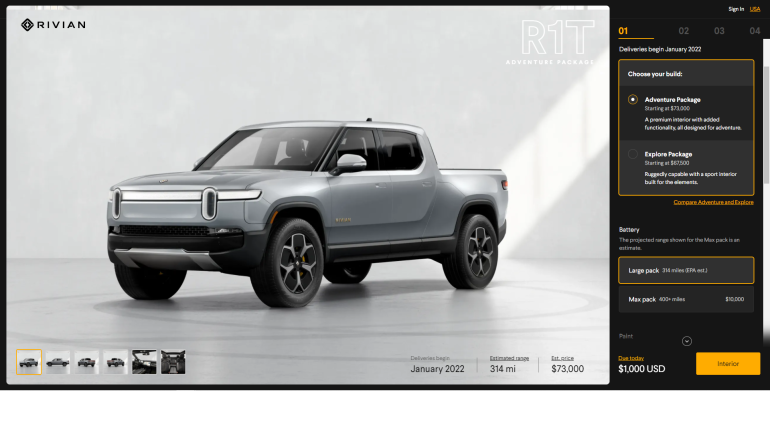 ระบบจองบนเว็บไซต์ของริเวียนได้อัปเดตระยะวิ่งใหม่อย่างเป็นทางการจากหน่วยงานคุ้มครองสิ่งแวดล้อมหรือ EPA แล้ว ซึ่งรถกระบะไฟฟ้า R1T มีระยะวิ่ง EPA ได้ 314 ไมล์ (505 กม.) ต่อการชาร์จหนึ่งครั้ง และรถ SUV ไฟฟ้า R1S มีระยะวิ่ง EPA ได้ 316 ไมล์ (508 กม.) ด้วยแพ็กแบตเตอรี่ขนาดมาตรฐาน (Large pack) 135kWh