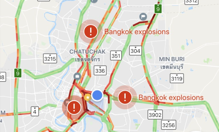 Google Maps ปักหมุดเหตุการณ์ระเบิดในกรุงเทพฯ วันที่ 2 สิงหาคม พร้อมหน้า SOS Alert ในหน้าค้นหา