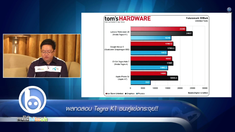 http://youtu.be/EjbzNCMhfyY Tegra K1 เปิดตัวอย่างอลังการกลางงาน CES ด้วยชิปสำหรับอุปกรณ์พกพาตัวแรกที่ใช้ชิปจีพียูมากถึง 192 คอร์ที่พ่วงมากับซีพียู ARM Cortex-A15 จนทำให้หลายคนสงสัยว่าประสิทธิภาพของชิปตัวนี้จะแรงแค่ไหน