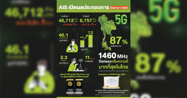 AIS ประกาศผลประกอบการไตรมาสแรกของปี 2566 ยังคงความแข็งแกร่งด้านผลประกอบการโดยมีรายได้รวม อยู่ที่ 46,712 ล้านบาท เติบโต 3.2% รวมถึงสามารถทำกำไรสุทธิที่ 6,757 ล้านบาท เติบโตขึ้น 7.1% เมื่อเทียบกับช่วงเดียวกันของปีที่ผ่านมา โดยยังคงวางงบลงทุนกว่า 27,000-30,000 ล้านบาท ในการพัฒนาคุณภาพบริการและโครงข่ายสื่อสารอัจฉริยะ 5G เพื่อสร้างประสบการณ์ดิจิทัลให้กับลูกค้าและคนไทย นอกจากนี้ยังเดินหน้านำศักยภาพความแข็งแกร่งของธุรกิจในทุกมิติมาร่วมกันสร้างการเติบโตของเศรษฐกิจแบบร่วมกัน หรือ ECOSYSTEM ECONOMY ภายใต้การขับเคลื่อนสู่การเป็นองค์กรโทรคมนาคมเทคโนโลยีอัจฉริยะ รองรับโอกาสและการเติบโตของกลุ่มธุรกิจในอนาคต