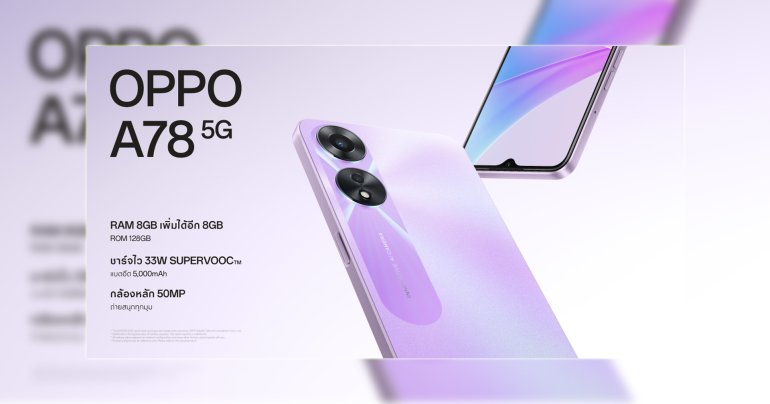 ออปโป้ ไทยแลนด์ ประกาศวางจำหน่าย “OPPO A78 5G รุ่น 4GB” แล้วอย่างเป็นทางการ สมาร์ตโฟนที่มาพร้อมสโลแกน “อัปสนุกให้สุดสปีด” อย่างสมชื่อ อัปความเร็วแรงด้วยเทคโนโลยี 5G และดีไซน์สวยทันสมัยอัปสีใหม่สวยสะดุดตาในสีม่วง Glowing Purple วางจำหน่าย ในราคาเริ่มต้นสุดคุ้มเพียง 2,999 บาท จากราคาปกติ 8,499 บาท ที่ทรูช็อปทั่วประเทศ