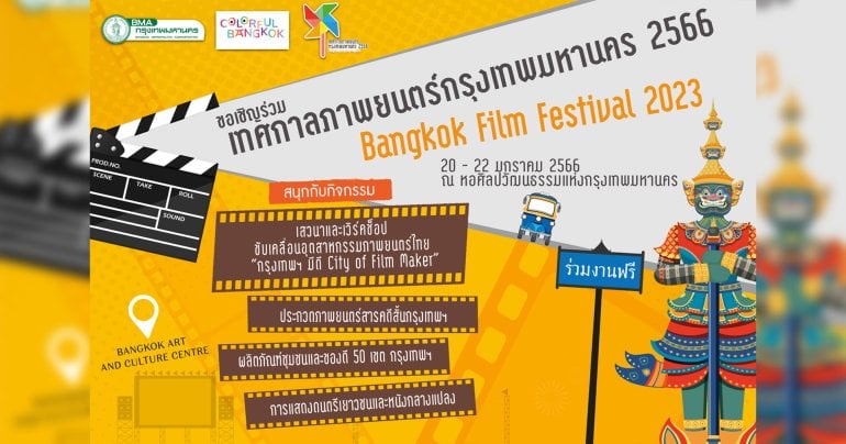 ประกาศวันที่ออกมาแล้วสำหรับ “เทศกาลภาพยนตร์กรุงเทพมหานคร ประจำปี 2566” (Bangkok Film Festival) ภายใต้นโยบายจัด 12 เดือน 12 เทศกาล ตลอดปีทั่วกรุงเทพมหานคร ซึ่งตรงกับช่วงสุดสัปดาห์ 20-22 ม.ค. 2566 พบกับไฮไลต์ภายในงาน อาทิ การเสวนาเข้มข้นจากนักสร้างภาพยนตร์และสารคดีแถวหน้าของไทย, ประกาศรางวัลสารคดีสั้น Connecting Bangkok 2030 และปิดท้ายด้วยการฉายหนังกลางแปลง 3 เรื่องที่ไปไกลระดับโลก สุริโยไท, ฉลาดเกมส์โกง และ Blue Again พร้อมสร้างสีสันความคึกคักในเทศกาลกับวงดนตรีเยาวชนที่กำลังมาแรงในกลุ่มวัยรุ่นรวม 6 วงดนตรี