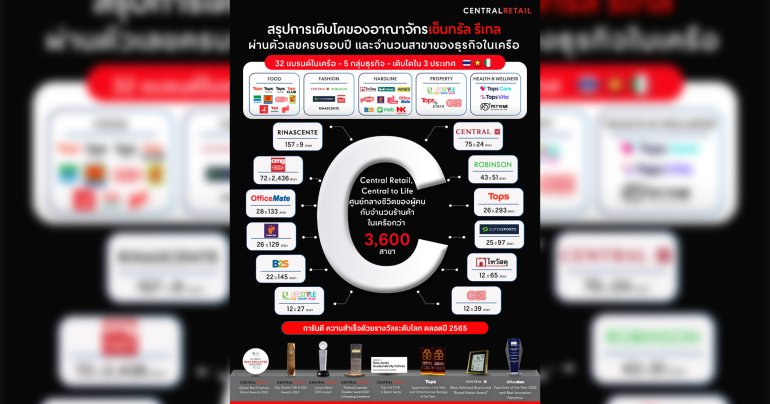 หากพูดถึงธุรกิจค้าปลีกรายใหญ่ของไทย คงไม่มีใครไม่รู้จัก “เซ็นทรัล รีเทล” ผู้นำตลาดค้าปลีกที่มีธุรกิจเติบโตกระจายอยู่ตามหัวเมืองหลักในหลายประเทศ แบ่งเป็นแบรนด์ค้าปลีกและร้านค้าชั้นนำกว่า 3,600 แห่ง ในไทย เวียดนาม และอิตาลี โดยมีพื้นที่ขายรวม 3,261,574 ตารางเมตร และพลาซ่ามีพื้นที่ให้เช่ารวม 712,521 ตารางเมตร ภายใต้การบริหารงานโดย บริษัท เซ็นทรัล รีเทล คอร์ปอเรชั่น จำกัด (มหาชน) หรือ CRC โดยแต่ละกลุ่มธุรกิจจะมีแบรนด์ค้าปลีกต่าง ๆ ซึ่งจำหน่ายสินค้าหลากหลายประเภท ในหลากหลายช่องทาง โดยในปี 2565 นี้ เซ็นทรัล รีเทล ได้สร้างปรากฎการณ์ความสำเร็จมากมาย และขยายสาขาธุรกิจอย่างไม่หยุดนิ่ง วันนี้จะชวนมาเจาะลึกตัวเลขที่น่าสนใจของเซ็นทรัล รีเทล ผู้นำเบอร์ 1 ค้าปลีกของไทย ที่หลายคนอาจยังไม่เคยรู้มาก่อน