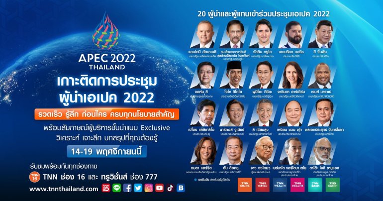 Read MoreTNN ชวนคนไทยเกาะติดทุกการรายงานข่าวตลอดการประชุมสุดยอดผู้นำเอเปค เริ่ม 14 – 19 พ.ย. 2565 ทาง TNN ช่อง 16