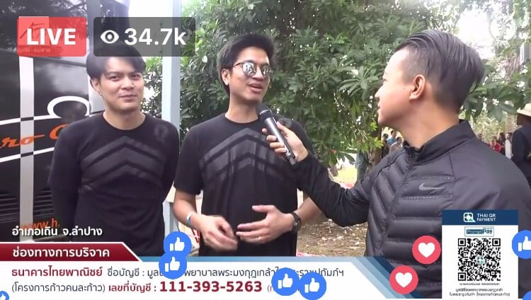โดยในวันนี้ (18 ธันวาคม) หนุ่ย พงศ์สุข หิรัญพฤกษ์ หรือนายห้างหนุ่ยของเราก็ได้เดินทางไปร่วมงานนี้ที่จังหวัดลำปาง (หนาวมาก) พร้อมดาราชื่อดังอื่น ๆ มากมายไม่ว่าจะเป็น อุ๋ย บูดาเบลส เติ้ล ธนพล เป๊ก วงซีล ที Jetset’er บอยปกรณ์ โน้ส อุดม เปอร์ พิธีกร น้องยี่หวา เพื่อร่วมเป็นโฆษกในไลฟ์สด ๆ ที่เริ่มขึ้นตั้งแต่ตี 2 เป็นต้นไป