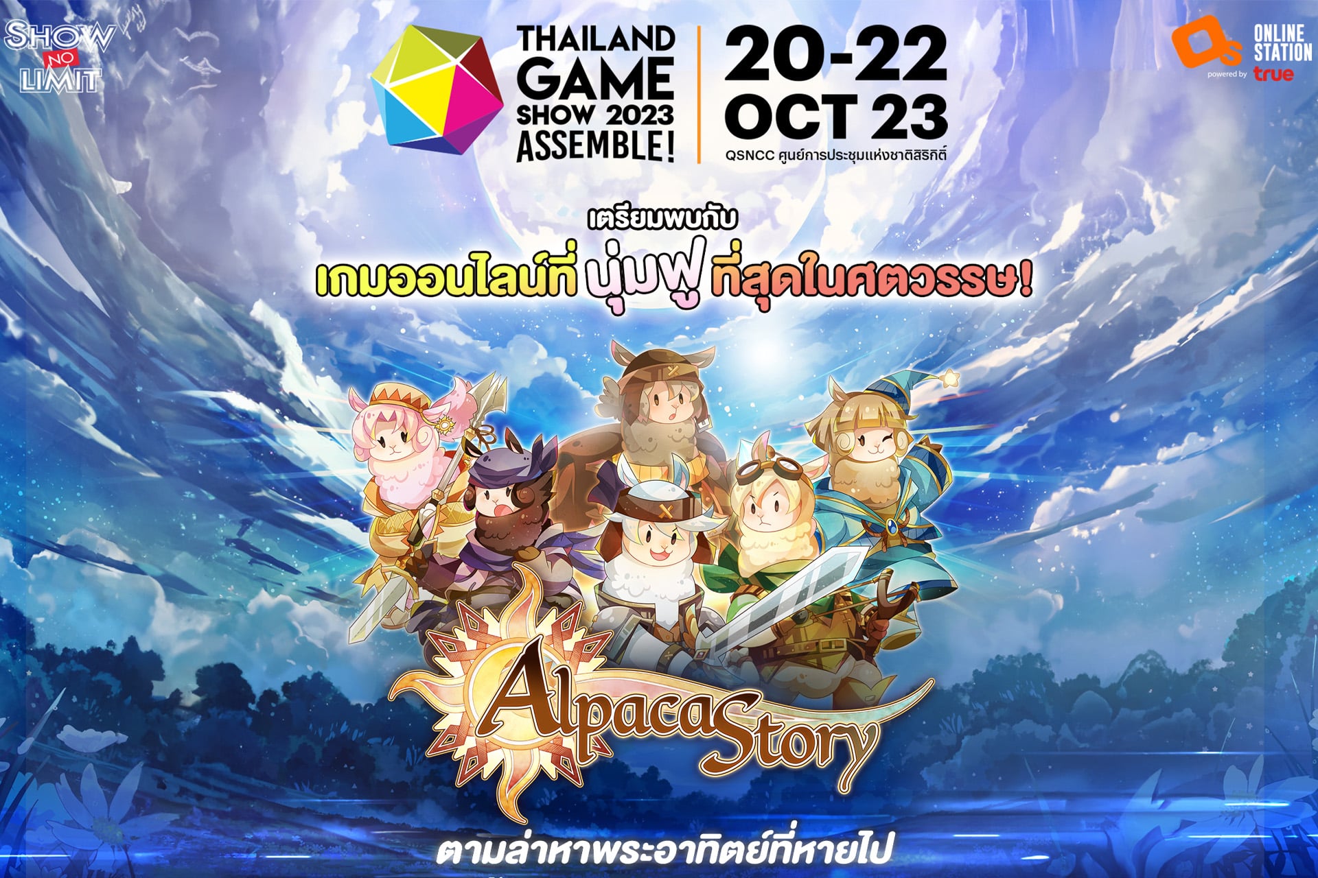พบความน่ารักกับกองทัพอัลปากาได้ตลอด 3 วันเต็ม ที่งาน Thailand Game Show 2023 นี้ วันที่ 20 – 22 ตุลาคมนี้ที่ศูนย์การประชุมแห่งชาติสิริกิติ์ ครั้งแรกกับการได้ยืนบนฉากเกมจริง ในดินแดนที่ไร้พระอาทิตย์ กับ “Alpaca Story” มารับบทอัลปาก้าที่นุ่มฟูที่สุด แล้วไปร่ายเวทมนตร์ต่อสู้ ตื่นเต้น ลุ้น สุดมันส์ ไปพร้อม ๆ กันที่บูธ S5 พาเหล่าอัลปาก้าทั้งหลายออกเดินทางไปตามหาพระอาทิตย์ ด้วยกัน