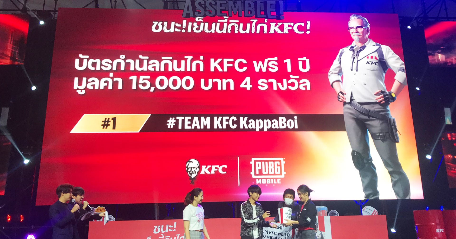 พร้อมกับแจกผู้โชคดีที่เข้าร่วมทั้งหมด 4 คน ด้วยรางวัลกินไก่ที่ร้าน KFC ฟรี 1 ปี เป็นมูลค่า 15,000 บาท