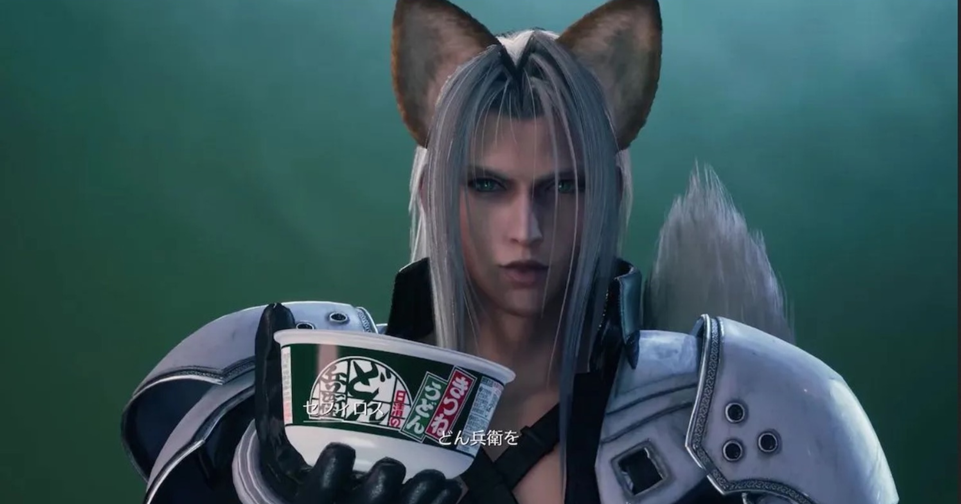 โดยในคลิปโฆษณาจะเป็นการพบกันระหว่าง 2 ตัวละครหลัก Cloud กับ Sephiroth ที่ในตอนแรกเหมือนจะอ้างอิงมาจากฉากหนึ่งในเกม และที่น่ารักน่าชังคือ Sephiroth ที่ได้แปลงร่างเป็นวิญญาณจิ้งจอก เพราะมีหูและหางงอกออกมา โดยเขาจะมาถาม Cloud ว่าอยากกิน Donbei หรือไม่