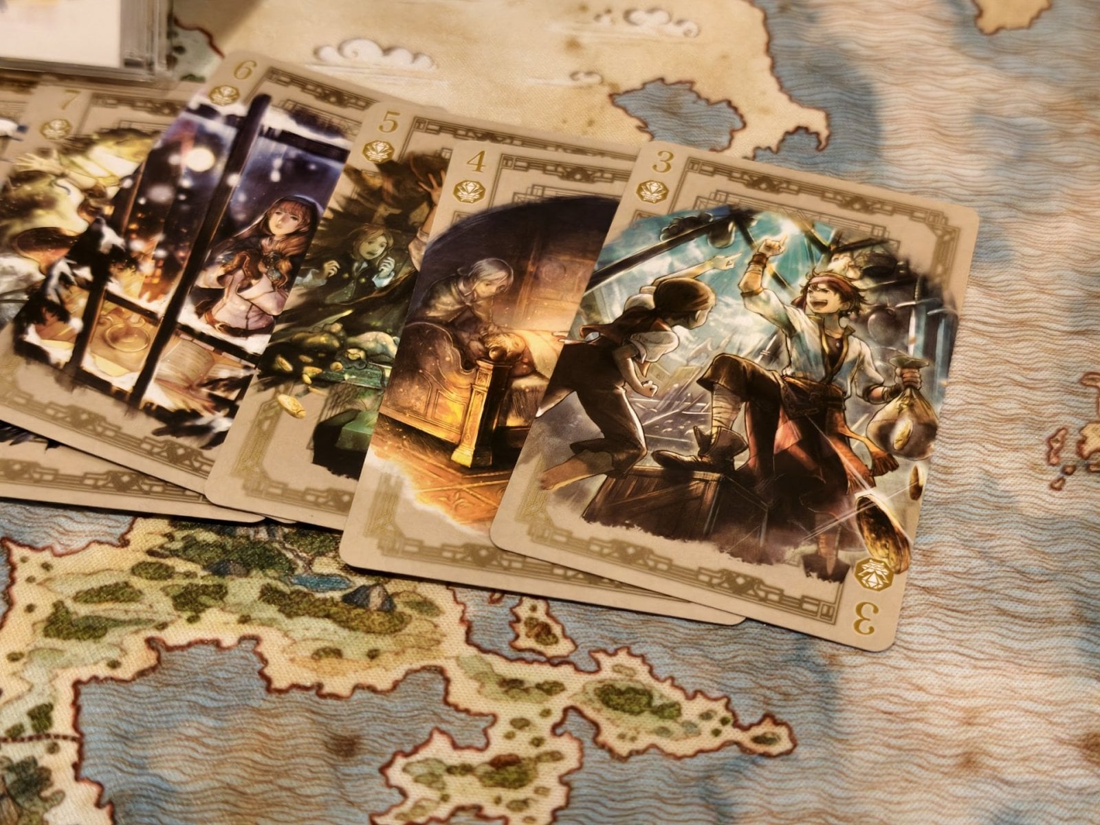 สำรับไพ่ที่ถูกออกแบบใหม่ ไพ่แต่ละใบมีลายเส้นตัวละครที่วาดขึ้นมาเฉพาะชุดนี้ เป็นของสะสมที่โชว์ให้เห็นถึงงานศิลป์สไตล์ยุโรปยุคกลางผสมผสานกับเอกลักษณ์ของ Octopath ได้อย่างลงตัว