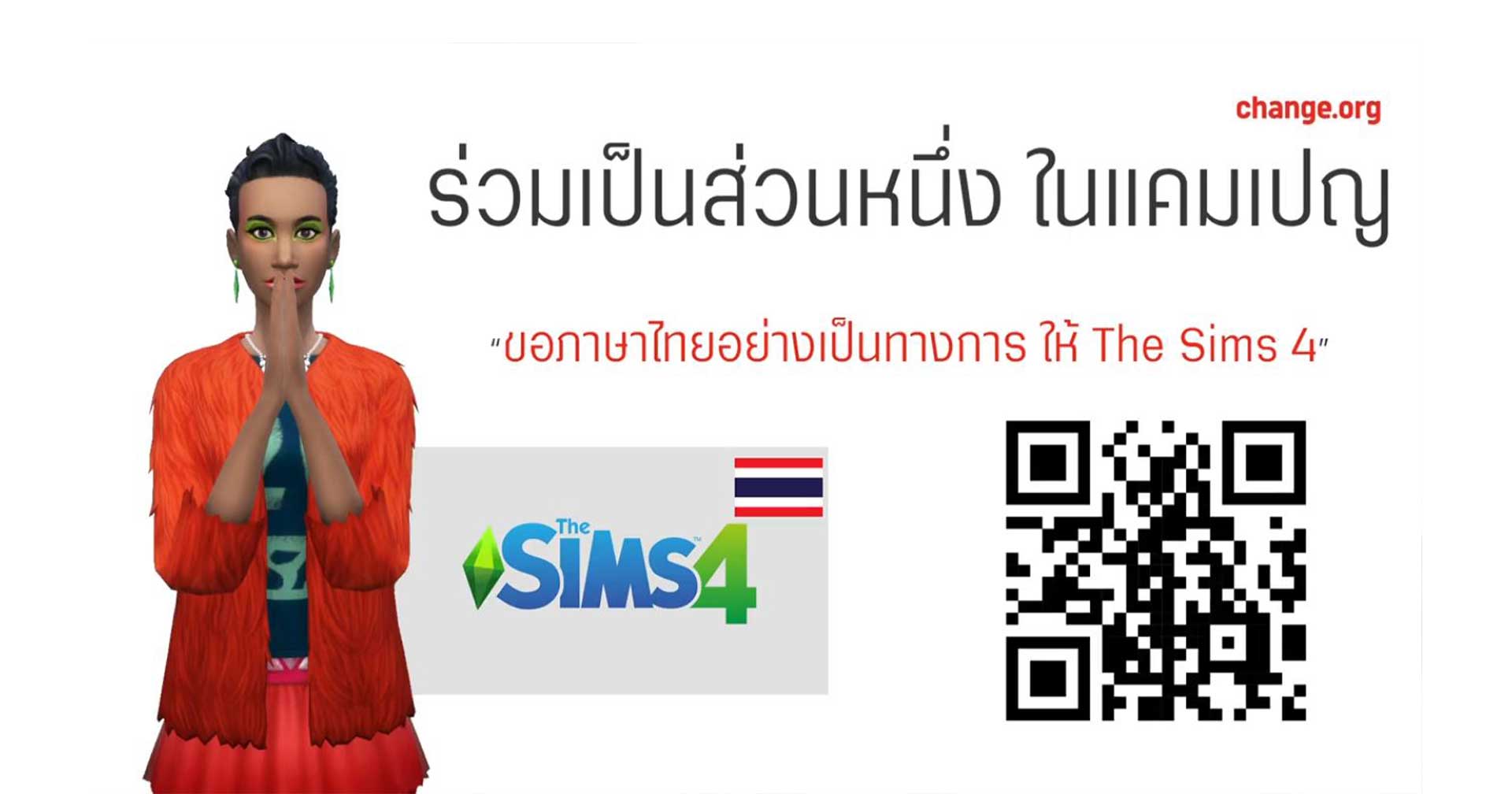 Roger Films ได้แชร์แคมเปญนี้ผ่านโพสต์ Facebook พร้อมกับเผยถึงสาเหตุที่จัดว่า “เป็นเพราะมีผู้เล่น The Sims 4 จำนวนมากต้องการให้ตัวเกมมีภาษาไทยแบบทางการ” ซึ่งแคมเปญนี้มีเป้าหมายให้ผู้เล่น The Sims 4 ลงชื่อผ่านเว็บไซต์ Change.org มากถึง 5,000 คน หากครบแล้วก็จะมีการจัดส่งแคมเปญนี้ให้ทาง EA รับทราบครับ