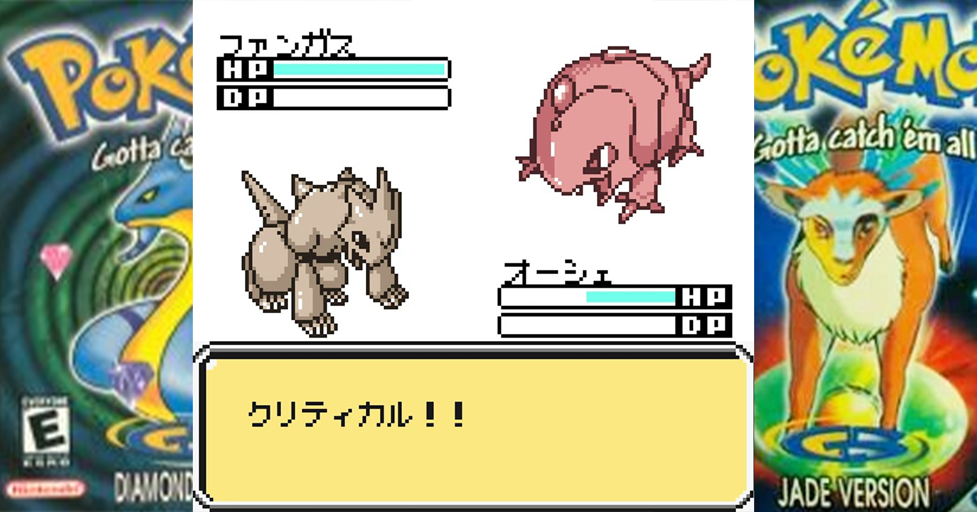 แถมตัวละครในหน้าปกที่เราเห็นก็ไม่ใช่มอนสเตอร์จากทั้งในเกม Keitai Denjuu Telefang และ Pokemon หน้าปกในเวอร์ชัน Diamon อันนี้ไม่รู้เลยว่ามันคือตัวอะไรจากไหน … แต่ถ้าเป็นหน้าเวอร์ชัน Jade จะเป็นการดัดแปลงดีไซน์มาจากจิตวิญญาณแห่งป่า ในเรื่อง Princess Mononoke ของทาง Ghibi