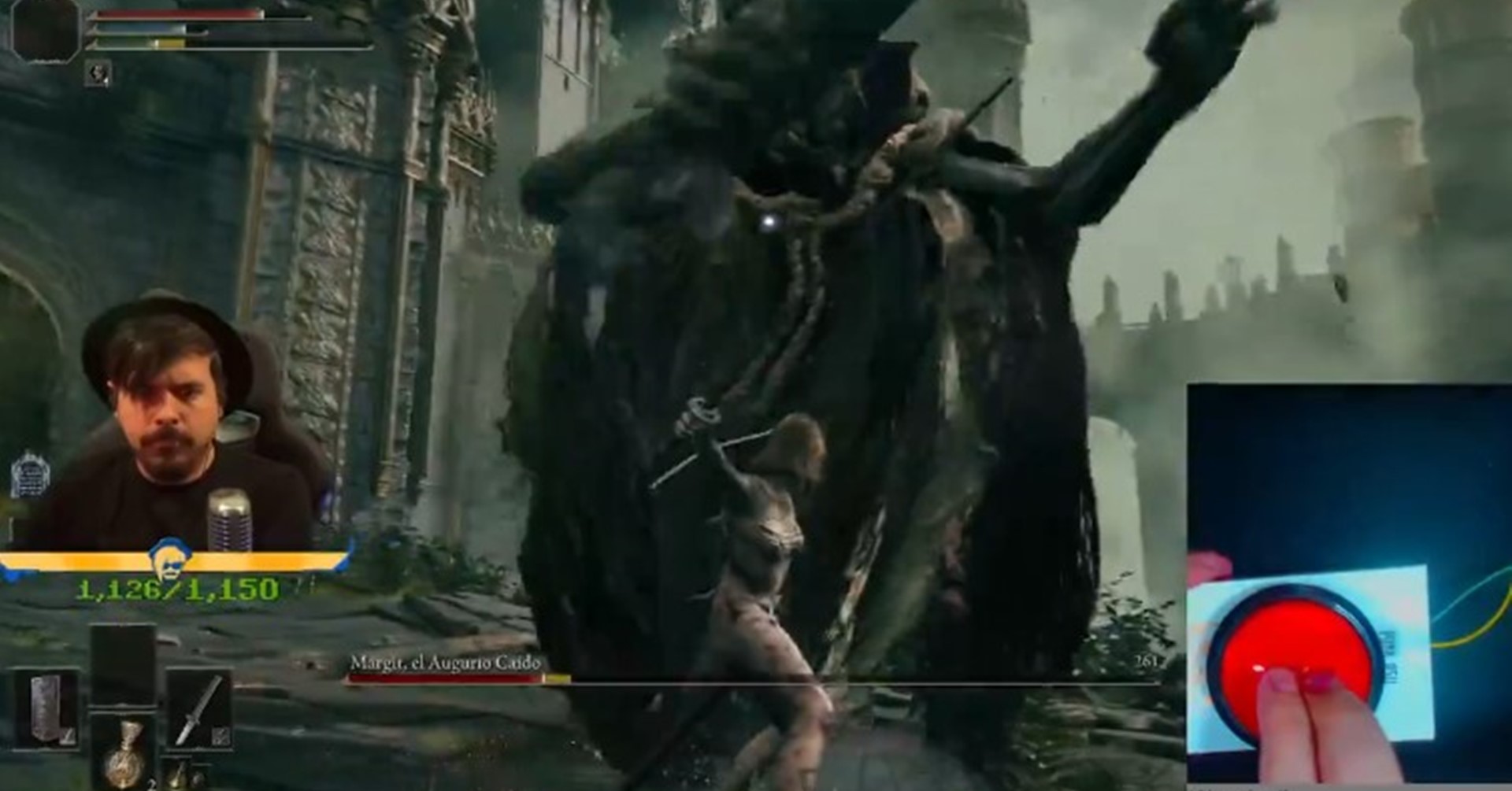 โดย การบังคับด้วยรหัสมอร์สเขาจะตั้งค่าด้วยการบังคับเกมด้วยปุ่มสีแดง ที่เมื่อส่งรหัสมอร์สไปเพื่อบังคับตัวละคร และเอาโชว์ด้วยการต่อสู้กับบอส Margit แม้จะทุลักทุเลอยู่บ้างแต่เขาก็สามารถกำจัดบอสลงได้ด้วยพลังชีวิตที่เกือบจะหมดหลอด