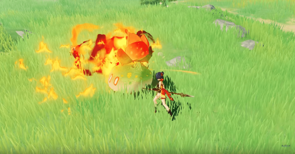 เผาไหม้ เมื่อธาตุไฟเจอกับธาตุพืช (ไม้) ก็จะเกิดสถานะ “เผาไหม้” ขึ้น ทำดาเมจไฟต่อเนื่อง แต่จะรุนแรงกว่าสถานะ “ติดไฟ” ปกติ