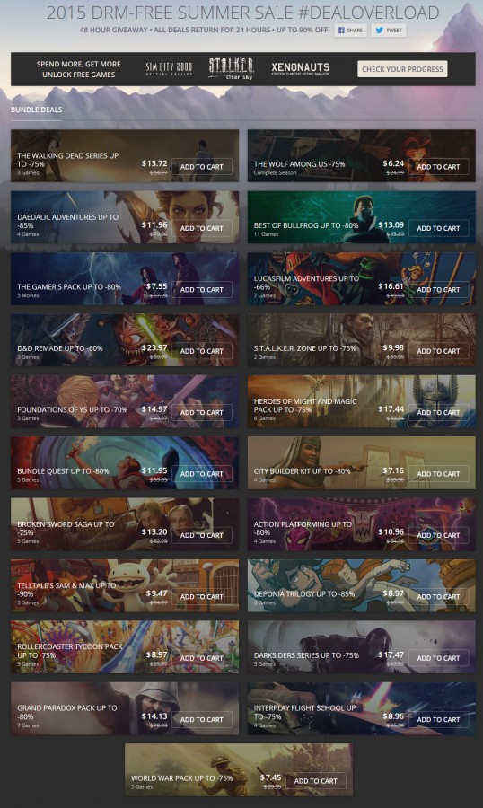 ช่วงนี้เข้าสู่ช่วง Summer ของต่างประเทศกันแล้ว เหล่าค่ายต่าง ๆ ก็เริ่มมีการจัดกิจกรรม Summer Sale กันถ้วนหน้า ซึ่งทาง GOG ก็มีกิจกรรมเช่นกันในชื่อ “2015 DRM-free Summer Sale #DealOverLoad” ซึ่งเป็นกิจกรรมการจำหน่ายเกมที่เรียกได้ว่าลดราคากันแบบจัดเต็มเลยทีเดียว ซึ่งงานนี้แบไต๋ดีลก็ขอนำของถูก – ของฟรีมาบอกต่อกันเช่นเคย 🙂