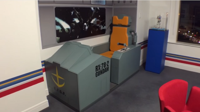 ห้องนั่งเล่น ก็ถูกตกแต่งไปด้วยโมเดลขนาดยักษ์หลายตัว และตัวที่เป็นไฮไลท์เลยคือ RX-78-2 cockpit ที่คุณสามารถขึ้นไปนั่งเล่นได้ มีทั้งแสงสีเสียงพร้อม ซึ่งเป็นการจำลองห้องคนขับที่พระเอกของเรื่องอย่าง Amuro ต้องขั้นไปนั่งบังคับกันดั้มนั่นเองงง!!
