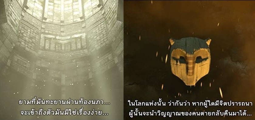 เพราะเกมก่อนหน้านี้อย่าง Marvel vs. Capcom: Infinite มีบางจุดยังดูขัดใจ แต่สำหรับ Shadow Of The Colossus ถือว่ามีการแปลเป็นภาษาไทยได้ดีกว่า และตัวเกมจะเป็นแนวแฟนตาซี ทำให้ผู้แปลได้ใช้คำที่ดูเข้ากับตัวเกมมาใช้ ซึ่งส่วนตัวแล้วมันเหมาะมากๆ และต้องชมทีมงานที่กล้าใช้ศัพท์ที่ดูแฟนตาซีปรัมปรา ที่เข้ากับเกมได้ลงตัวมาก และเกมต่อไปก็ขอให้แปลได้แบบนี้
