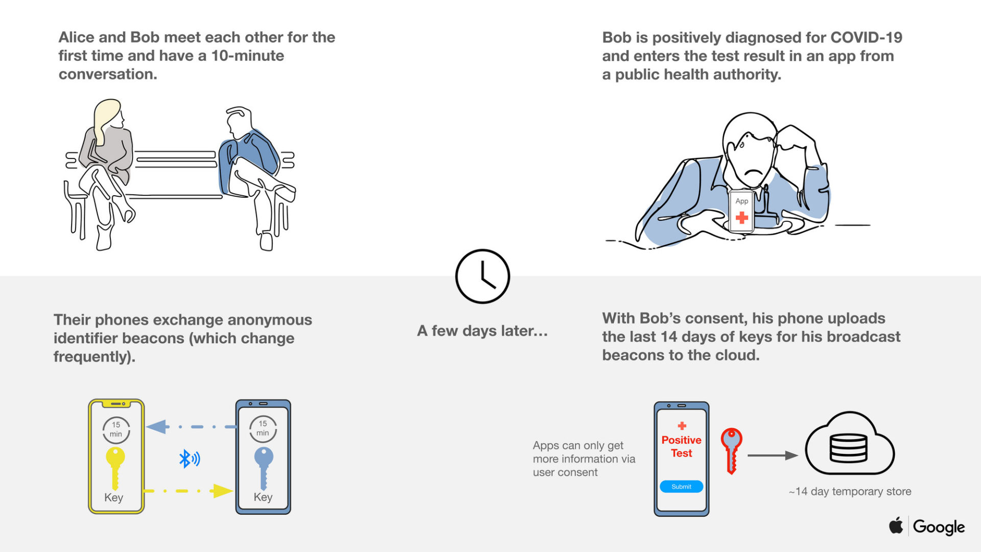 และในอีกไม่กีเดือนข้างหน้า Apple และ Google จะเปิดใช้งานบลูทูธเพื่อการติดตามตัวผู้ป่วย COVID-19 และแจ้งให้บุคคลใกล้ชิดให้เฝ้าระวัง ซึ่งจะให้ความสำคัญกับความเป็นส่วนตัวเป็นหลัก