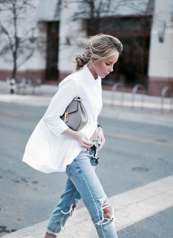 นาฬิกาสีขาวแบบนี้อันที่จริงสามารถสวมเข้ากันได้กับเสื้อผ้าหลากหลายสีเลยล่ะค่ะ แต่วันนี้เรานำลุคที่เหมาะสุดๆนั่นก็คือเสื้อเชิตสีขาวกับกางเกงยีนส์ ที่ดูเหมือนจะเป็นสไตล์เบสิกที่ทุกคนคงมีติดตู้เสื้อผ้ากันอยู่แล้ว ถ้าอยากได้ลุคชิคๆ ก็ต้องลองพับขากางเกงแล้วสวมรองเท้าส้นสูงที่มีสายคาดประดับสีดำ ดูดีสุดไปเลย