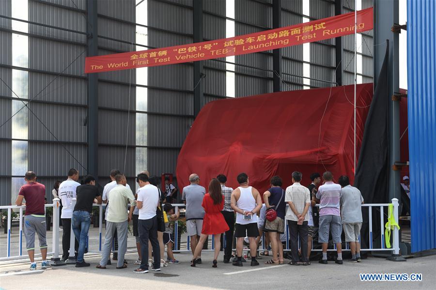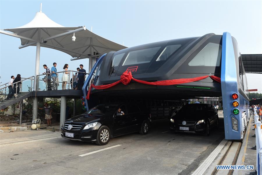 TEB-1 หรือ Transit Elevated Bus ได้เริ่มทดลองให้บริการตั้งแต่วันที่ 2 สิงหาคมที่ผ่านมาในเมือง Qinhuangdao ของจีน โดยรถบัสมีความยาว 22 เมตร กว้าง 7.8 เมตร และสูง 4.8 เมตร สามารถรองรับผู้โดยสารพร้อมกันได้ 300 คน ใช้พลังงานไฟฟ้า สามารถทำความเร็วได้สูงสุด 65 กิโลเมตรต่อชั่วโมง