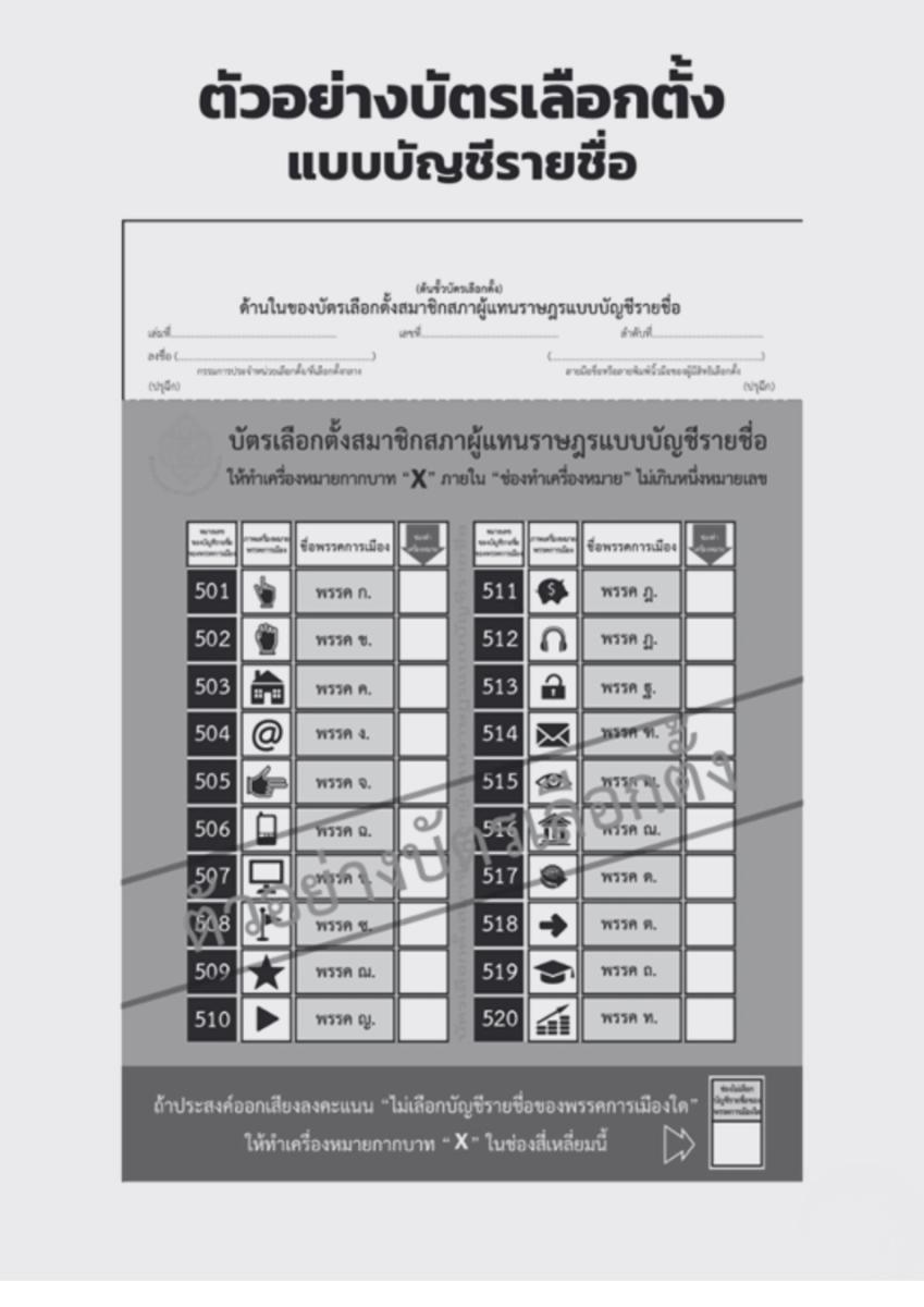 2. บัตรเลือกตั้งแบบบัญชีรายชื่อ