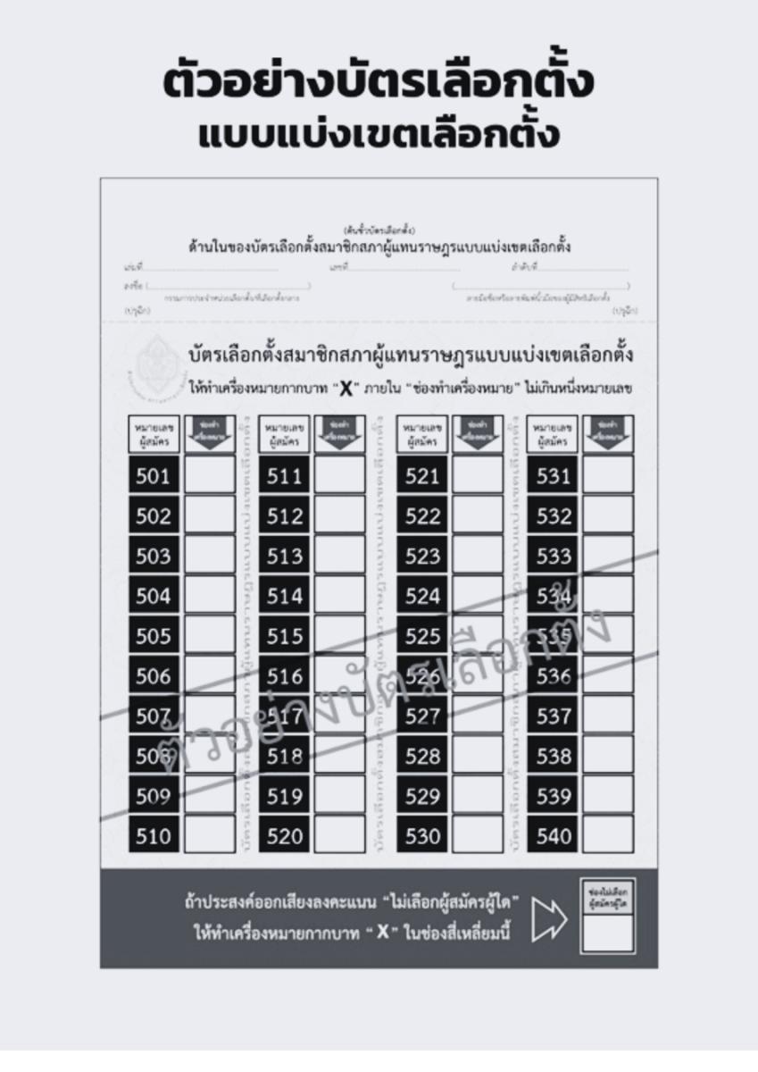 1. บัตรเลือกตั้งแบบแบ่งเขต