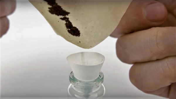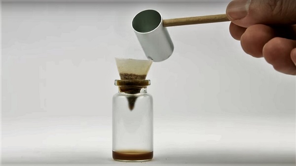 จากวิดีโอข้างต้นได้แสดงวิธีทำโดยการนำเมล็ดการแฟ 1 เมล็ด มาฝนด้วยตะไบ จากนั้นนำมาใส่ลงใน “ฟิลเตอร์” (Filter: ที่กรอง) ขนาดจิ๋ว และเทน้ำร้อนที่ได้จากการต้มด้วยเทียนลงไป